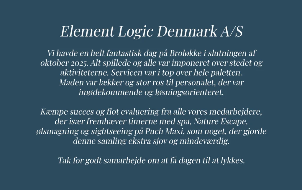 I den smukke natur, der omgiver Broløkke, kan I vælge at afholde walk & talk-møder eller benytte jer af vores terrasser og grønne områder til forfriskende pauser og inspirerende diskussioner. Dette skaber den perfekte ramme for en produktiv og mindeværdig konference i Danmark.