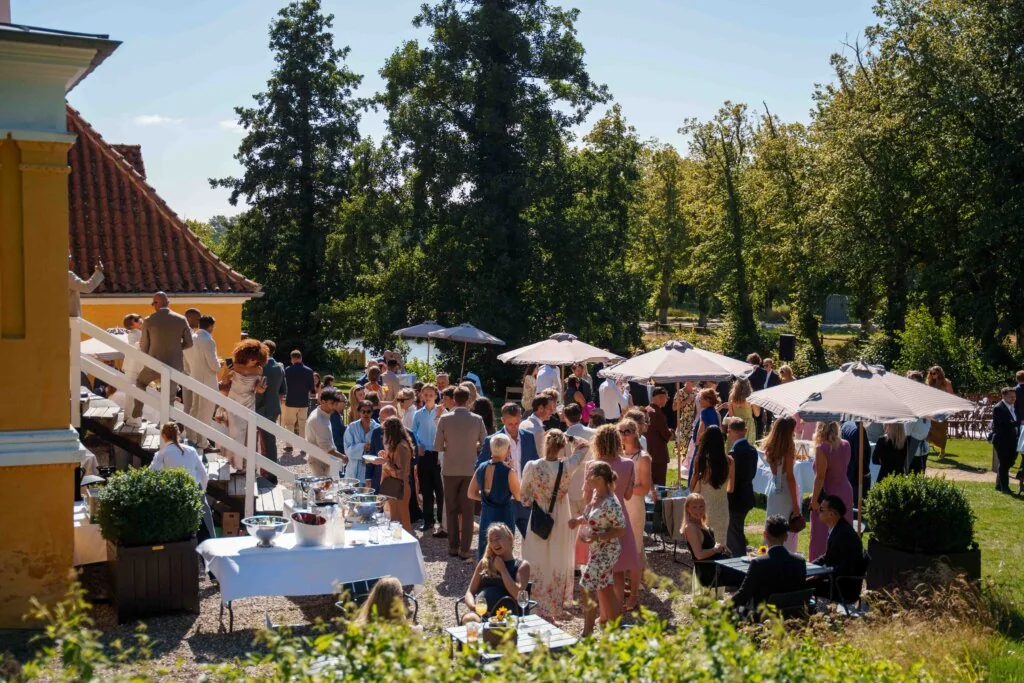 Efter vielsen vil Broløkke Herregård danne rammen for jeres bryllupsreception, med velsmagende champagne og bryllupskage efter jeres ønske.