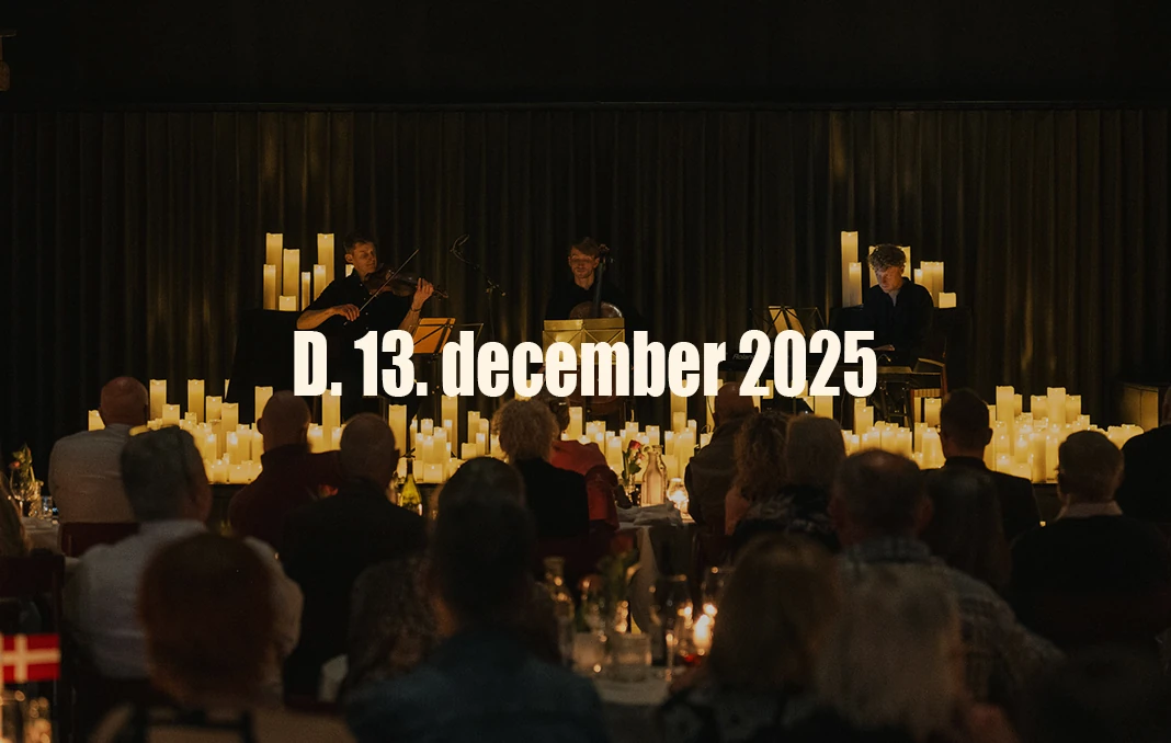 D. 13. december byder vi jer velkommen til en stemningsfuld julekoncert, når Soirée Musique indtager scenen med deres fortryllende strygershow den 13. december 2025.