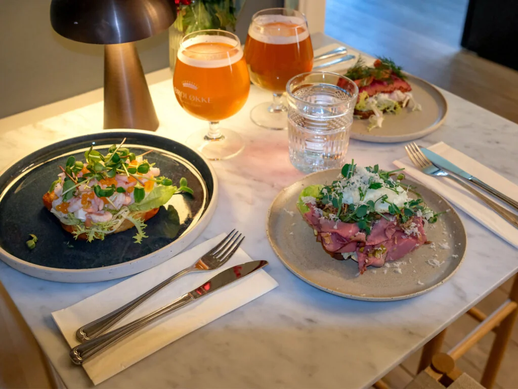 På menuen finder du klassiske smørrebrødsfavoritter med et Broløkke-præg: pankopaneret rødspættefilet med remoulade, citronperler og dild, rødbedelaks, stjerneskud og meget mere – alt sammen lavet med omtanke og kærlighed til råvarerne.